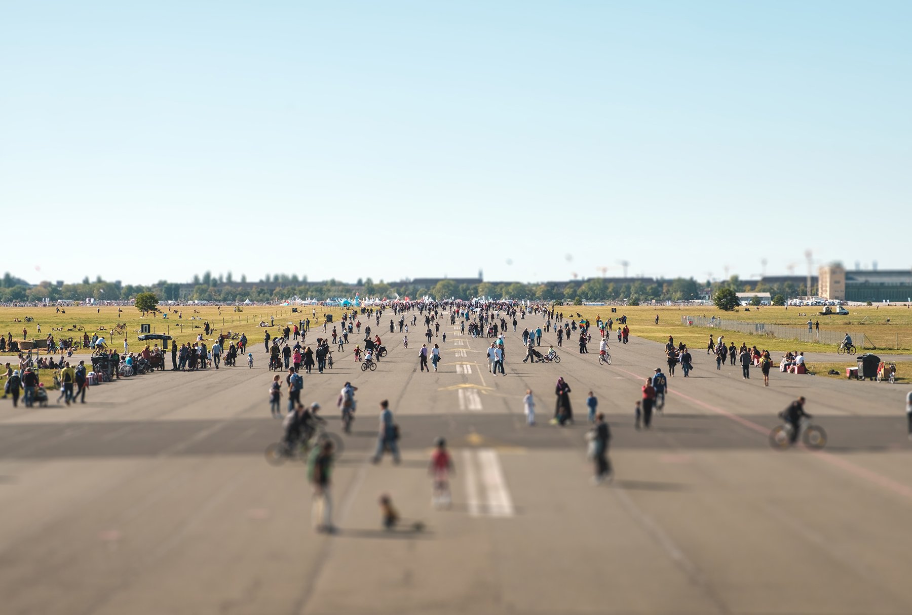 Vom Tempelhofer Damm und der Ringbahnstraße sind es nur wenige Gehminuten bis zum Tempelhofer Feld – seit 2010 die größte Freizeit-Grünfläche Berlins. Ein beliebter Ort, unter dem weiten Himmel aufzutanken, ein Sonnenbad zu nehmen, sich mit Freunden zum Picknick zu treffen, zu joggen oder an Wochenenden zu grillen. Im Sommer finden hier Konzerte statt.