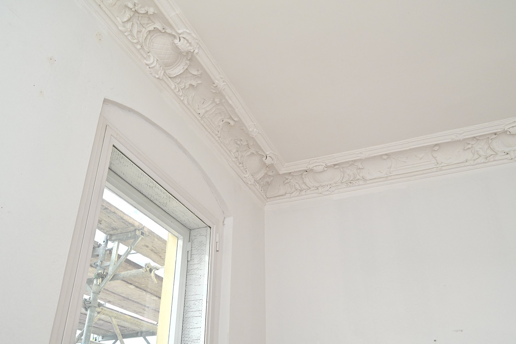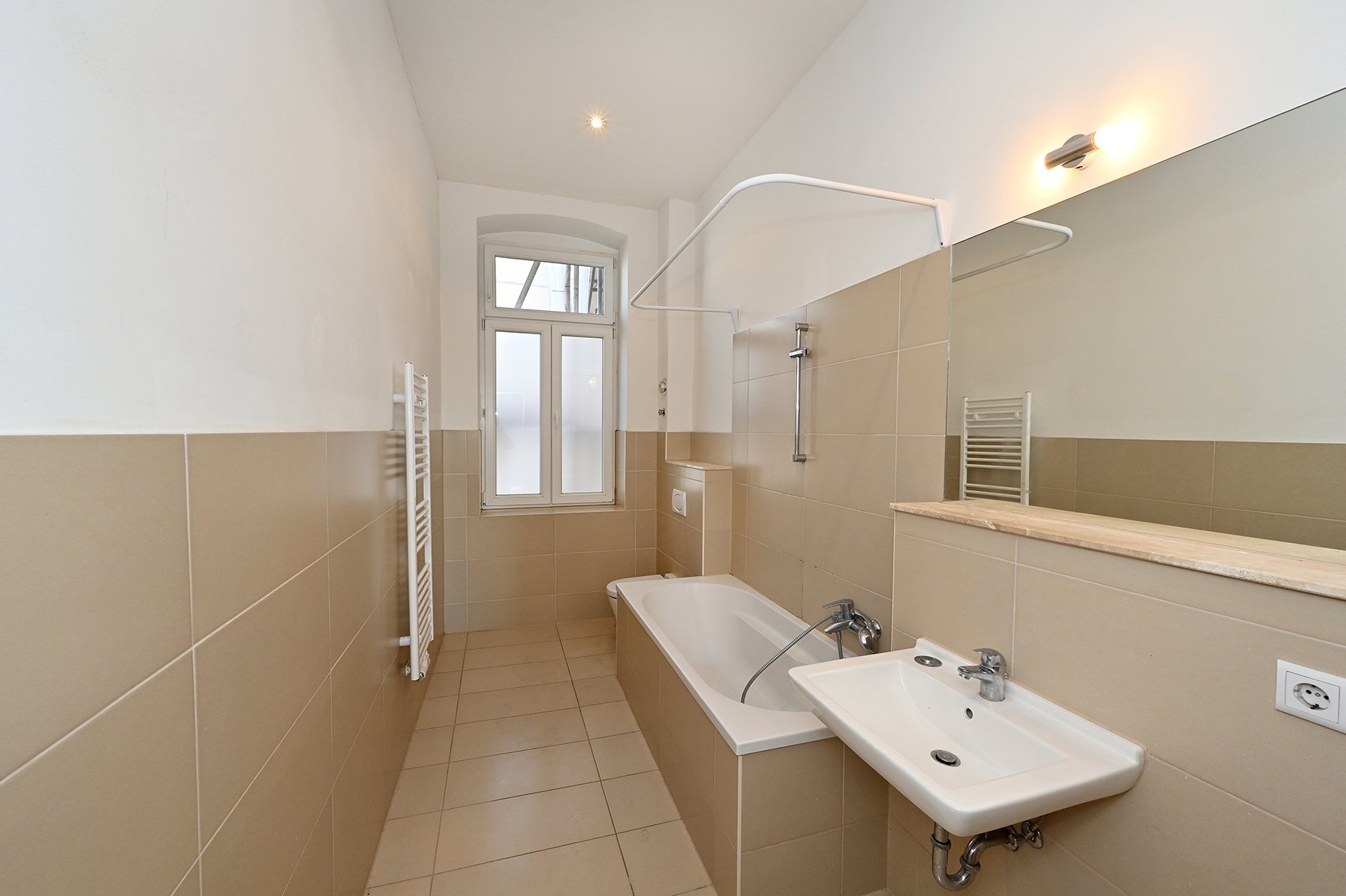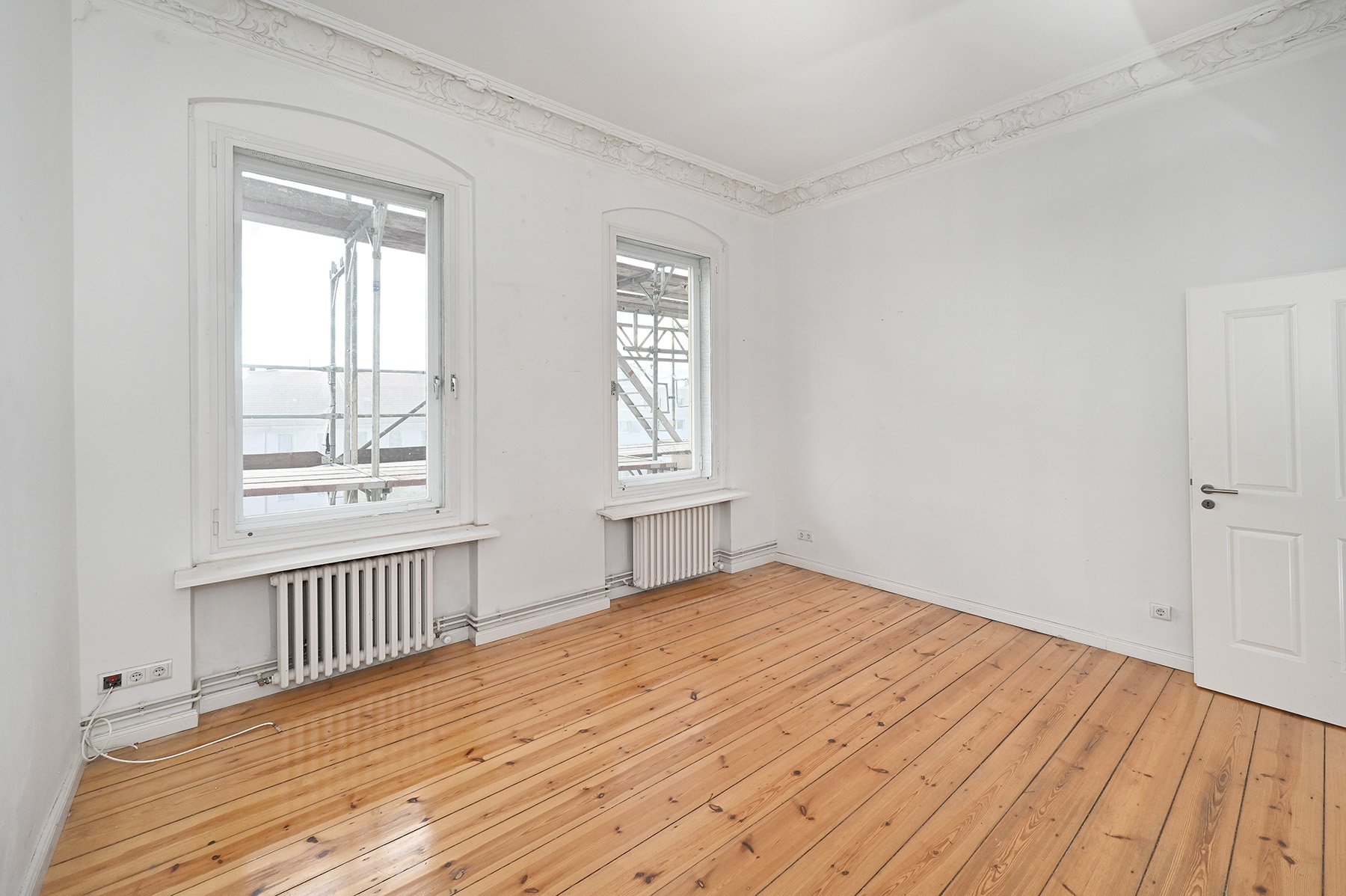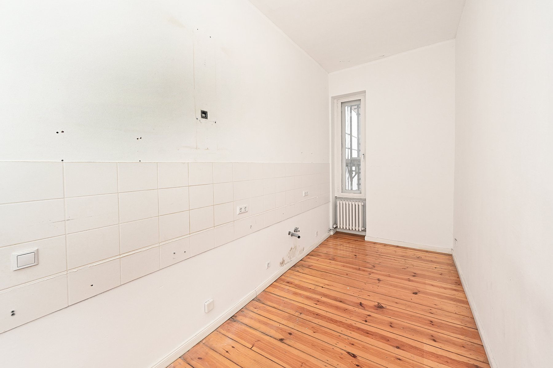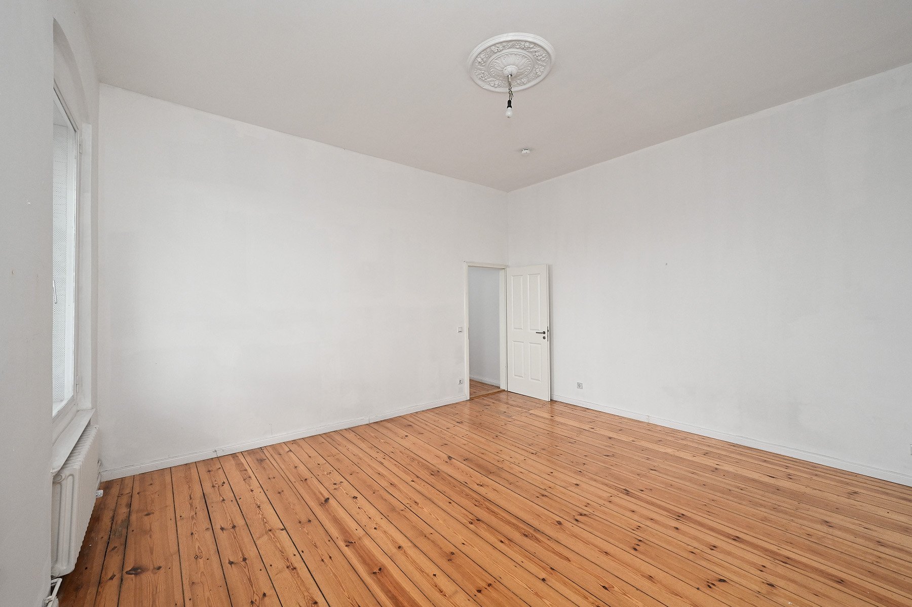Die Wohnung wird unrenoviert verkauft, befindet sich aber in einem guten Zustand. Die Wände sind im Grundanstrich weiß gehalten. Die aufgearbeiteten Dielenböden geben der Wohnung zusätzlich eine warme und behagliche Atmosphäre. Einige der Zimmerdecken sind mit Stuckleisten oder Stuckrosetten verziert. Das Wannenbad ist modern gefliest und mit wertiger Sanitärausstattung versehen. Alle Türen sind originale, weiß lackierte Holztüren.