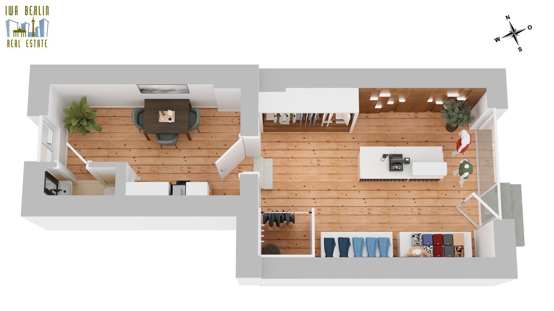 Auf den vier Etagen befinden sich neun Wohneinheiten. Im Erdgeschoss werden zwei Gewerbeeinheiten von Bekleidungsgeschäften genutzt. Fassaden, Dach und Treppenhaus sowie der Hofbereich werden gerade stimmig renoviert. Das Treppenhaus wird mit neuem Sisalbelag ausgestattet. Das Dach und die Decke des Obergeschosses werden neu gedämmt. Das Haus wird mit Erdgas versorgt.