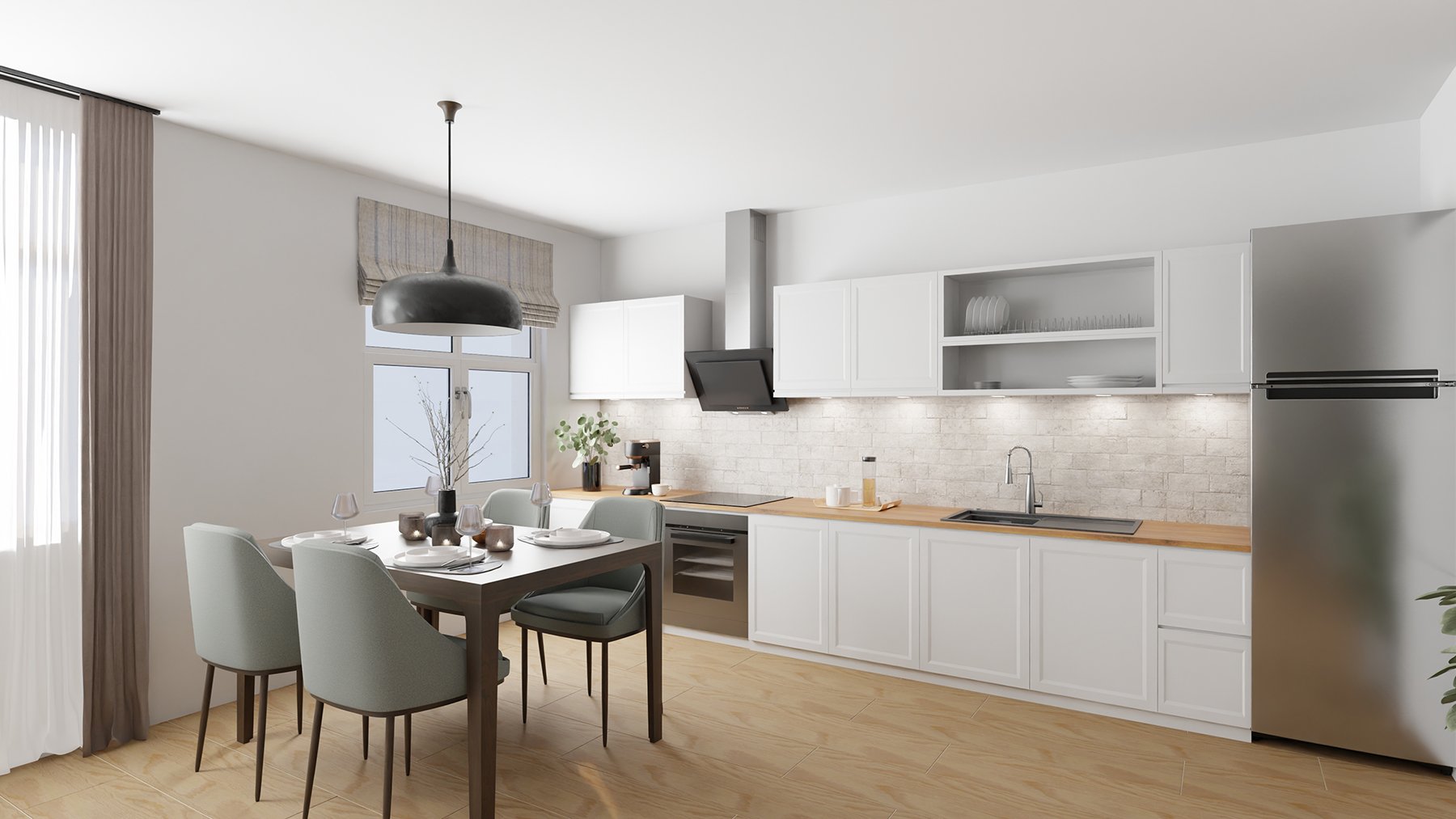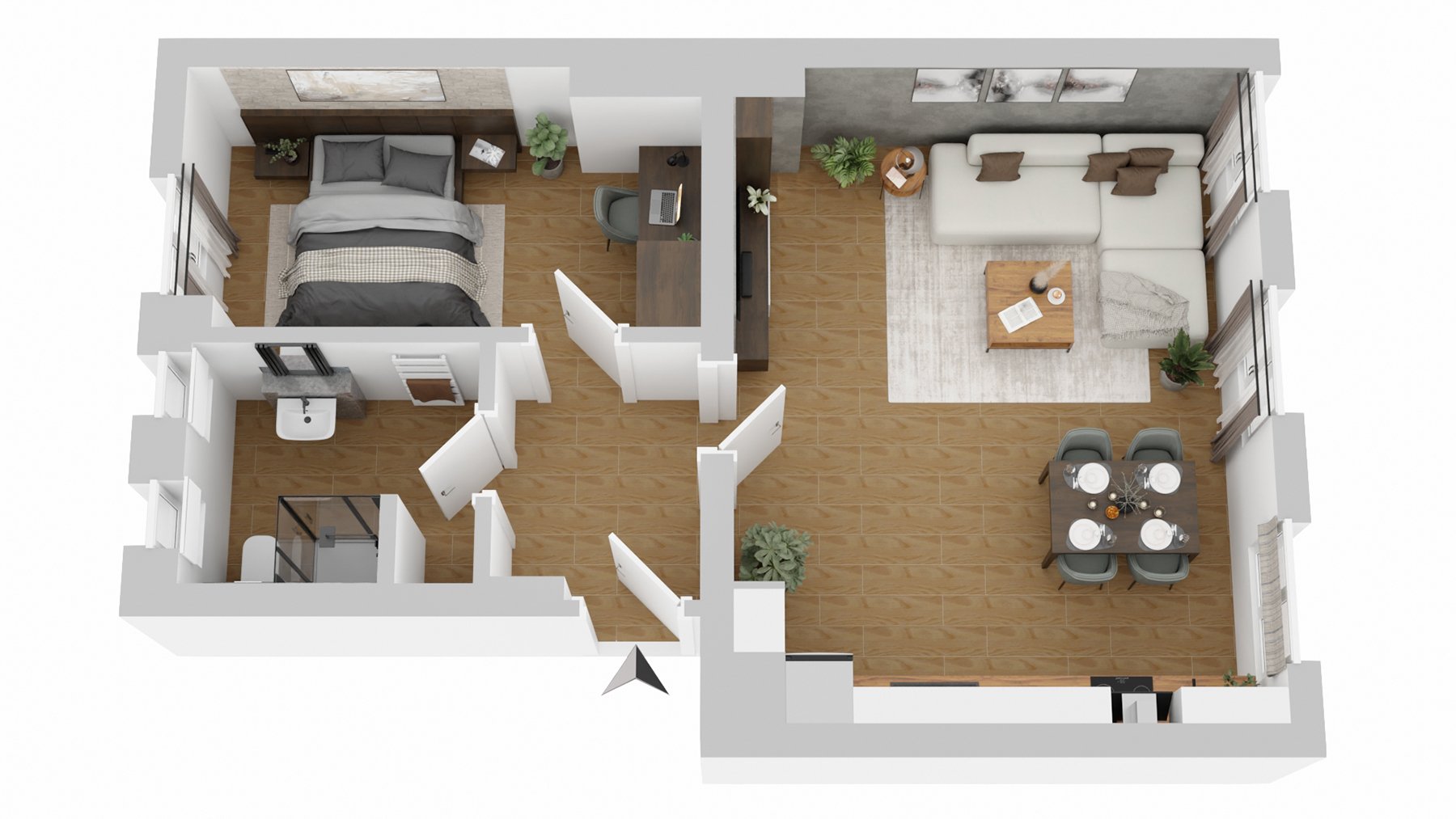 Das helle Wohnzimmer mit integrierter Küchenzeile bietet viel Platz zum Entspannen, für gesellige Abende oder individuelle Hobbys. Das Tageslichtbad ist modern ausgestattet, das Schlaf- und Arbeitszimmer liegt ruhig zur Gartenseite und wird von der Morgensonne erhellt. Ein echtes Highlight ist der grüne Innenhof mit Gartencharakter. Jeder Wohnung steht eine eigene Gartenparzelle zur Verfügung – ein kleines Stück Natur mitten im Alltag. Die Wohnung befindet sich im Hochparterre mit Ost-West-Ausrichtung.