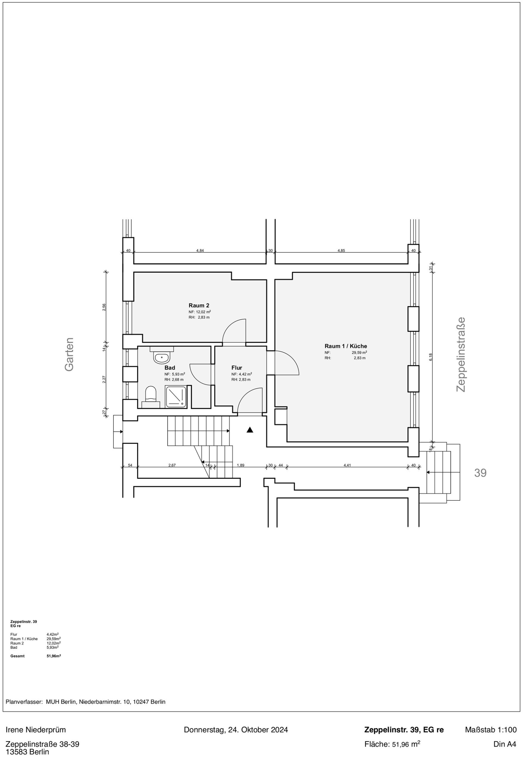 Die Hausnummer 38+39 der Zeppelinstraße haben sich noch viel vom gut bürgerlichen Flair der goldenen Zwanziger Jahre bewahrt. Angenehm ist die ursprüngliche Altberliner Traufhöhe, die der Straße Licht und Ruhe gibt. Die Häuserzeile hat gerade mal 3 Etagen und verströmt eine gemütliche Wohnatmosphäre. Zum Hof hinaus gibt es Gärten. Jede Wohnung hat einen Gartenanteil zur eigenen Nutzung.