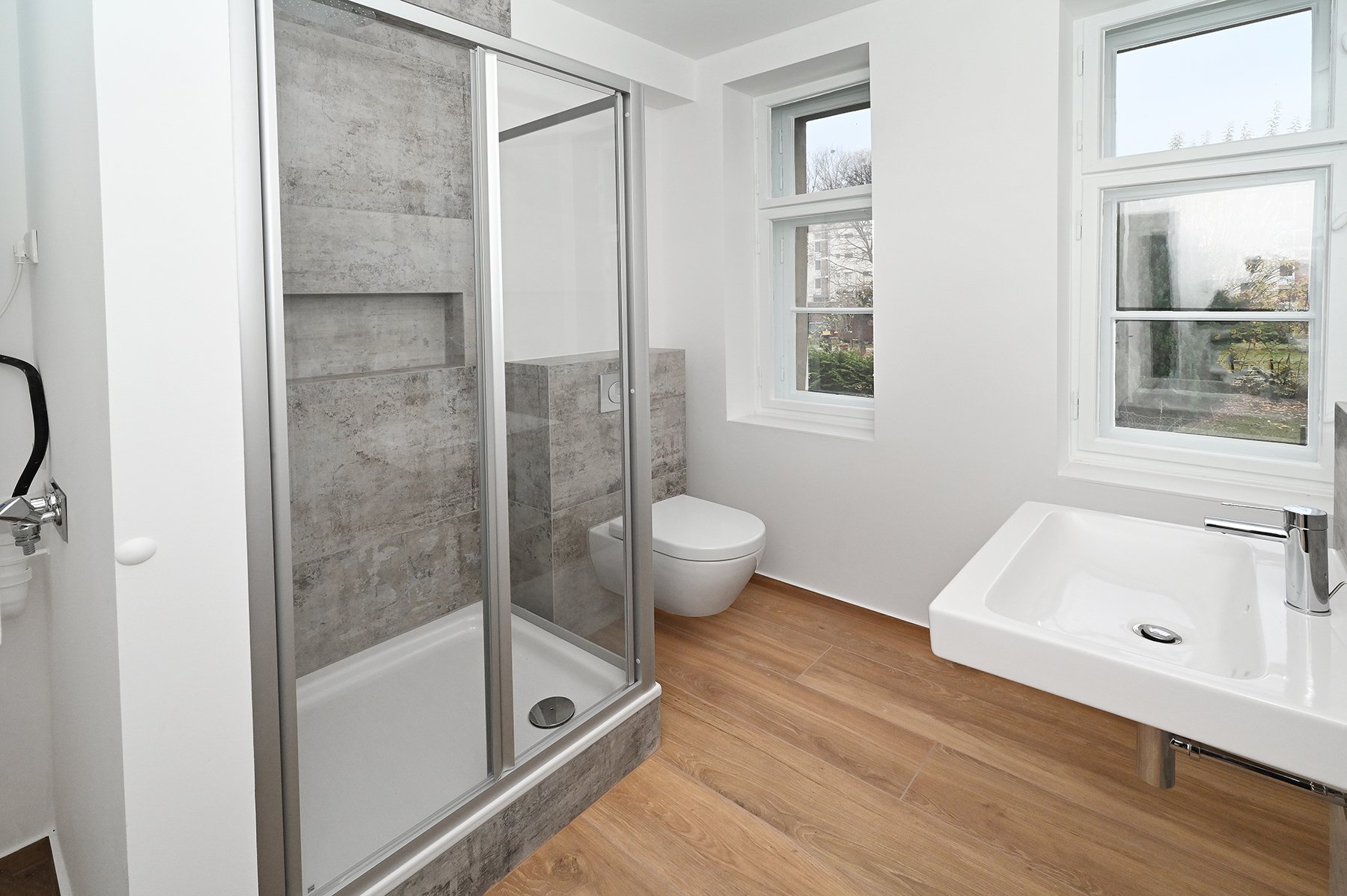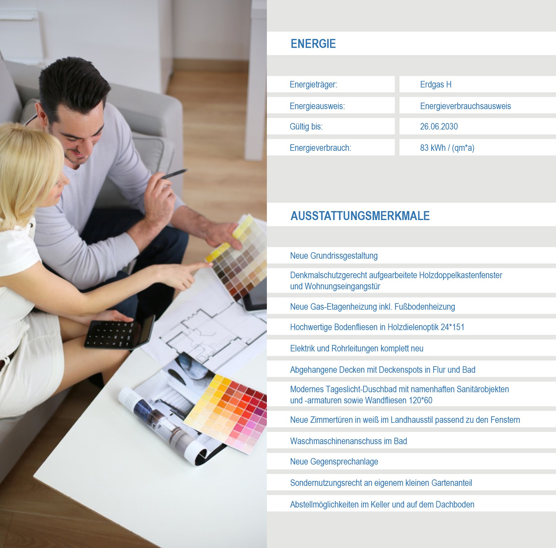 Schon beim Betreten dieser Eigentumswohnung spürt man ihre besondere Gemütlichkeit. Die Räume wirken hell, modern und zugleich wohnlich – ein Ort, an dem man sich sofort zuhause fühlt. Die umfassende Sanierung verbindet den stilvollen Altbaucharme mit einem modernen Erscheinungsbild und hohen Maß an Wohnkomfort. Neue Fußböden, Türen, Heizungsanlage mit Fußbodenheizung, Sanitärinstallationen, erneuerte Rohrleitungen und Elektrik sowie Deckenstrahler